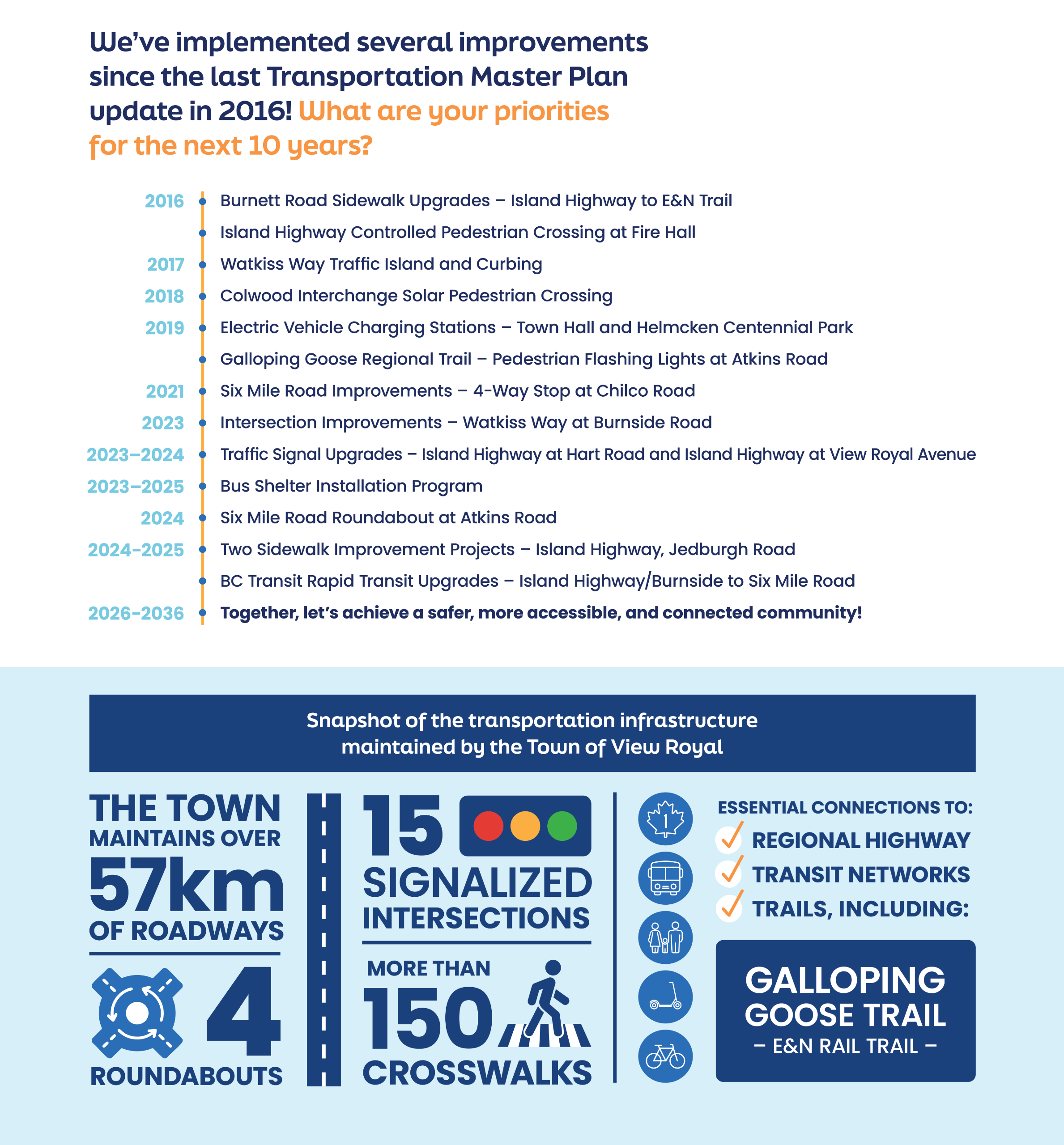 We are updating View Royal’s Transportation Master Plan (TMP) to guide improvements over the next 10 years.